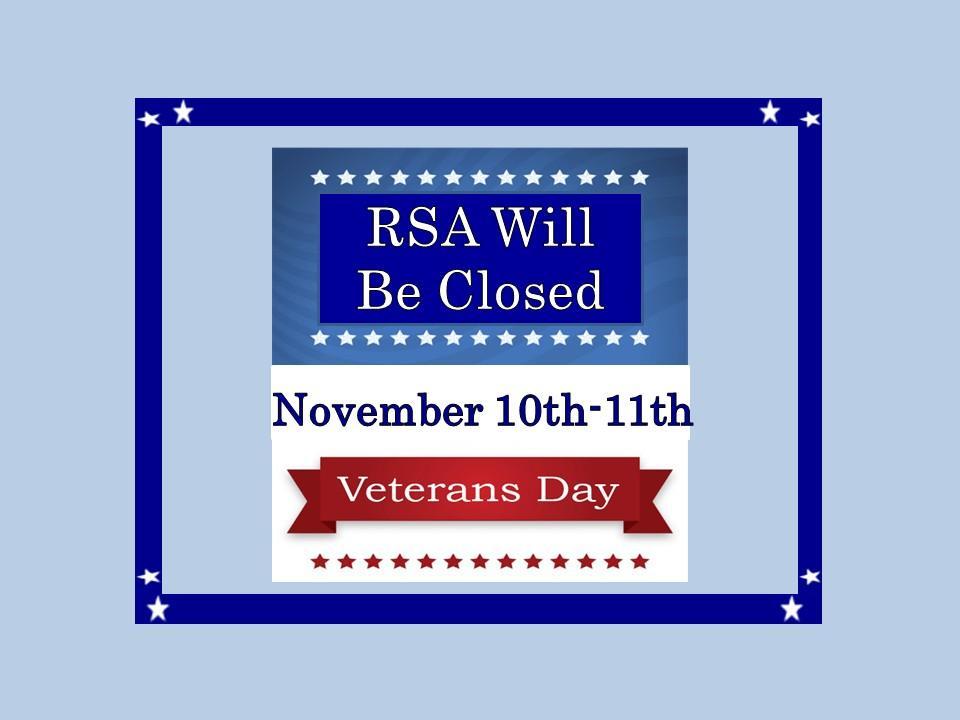 RSA will be closed Nov. 10th & 11th